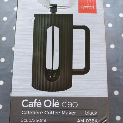 Grunwerg Ciao Cafetiere 3 Cup Black Plastic Glass Coffee Maker Kitchen