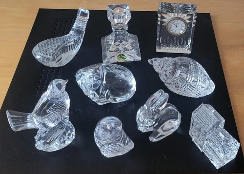 PICK 1- Waterford Crystal vtg MCM Paperweight Figurine: Cat Conch Bell Clock Owl