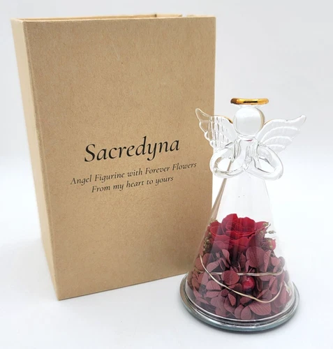 Sacredyna Blown-Glass Angel Figurine/Lighted w/Dried Roses/From My Heart Gift