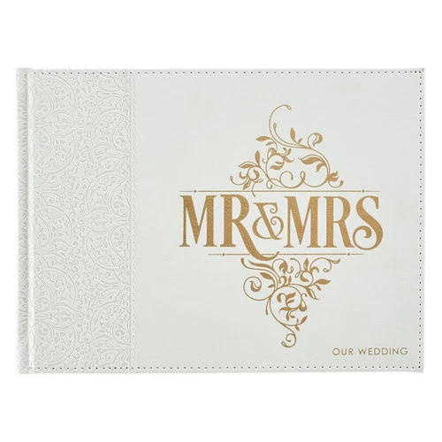 Wedding Guest Book - Mr. and Mrs. Our Wedding - Lacey White Faux Leather