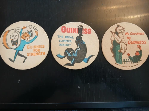 3 Vintage GUINNESS BEER MATS 1950's 4" Diameter Very Good Condition