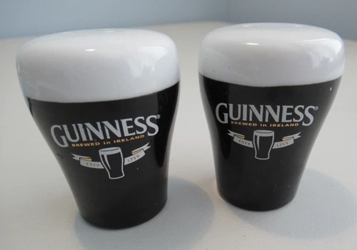 VGC Guinness Salt & Pepper Pots, China Shakers with Stoppers, Pint of Guinness