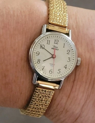 Timex Indiglo Quartz NEW BATTERY Hadley Roma Watch Stretch Band Gold Tone