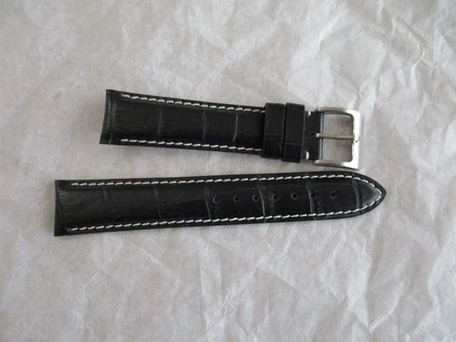 hadley roma watchstrap watch band strap 20mm genuine leather black contrast