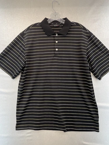 Men’s Walter Hagen Polo, Large, Black With Yellow And White Stripes