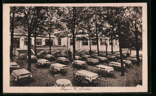 Postcard Hagen I. W., restaurant parking garage, garden view 1921