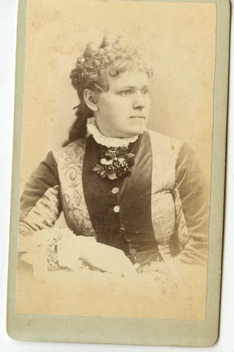 CDV - Young Lady - Close Up - Curly Hair, Large pin at neckline