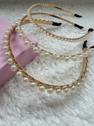3pcs Pearl Headband Set S M L Sizes Gold Beaded Hairband Bridal Party Hair Acces