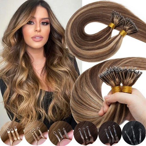 Nano Ring Tip Extensions 100% Human Hair Thick 200 strands#Bonding Beads Metal