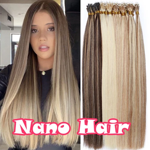Nano Ring Remy Human Hair Extensions Micro Loop Nano Bead Balayage 100g.Thick 14