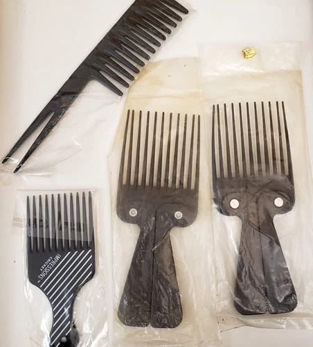 Lot of 4 Vintage NOS Hair Pick Afro Combs Impressions Cricket Korea Hong Kong