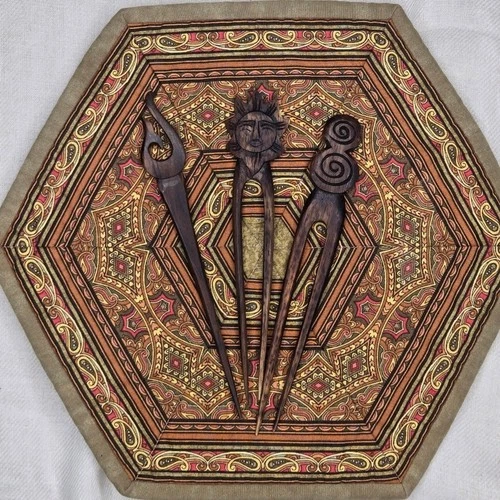 Intricate Wooden Hair Picks - Set of 3 Sun Face Swirls Wave