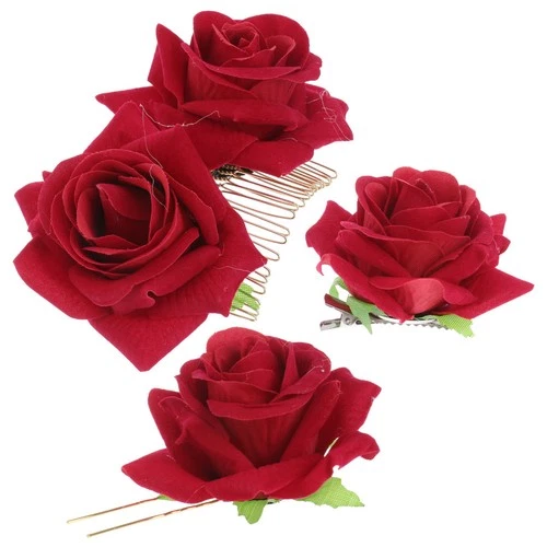 3pcs Rose Flower Hair Accessories Set Hair Comb U Shaped Hair Stick Hair Pin
