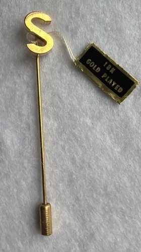 NOS Vintage Korea 18k Gold Plated Initial S Stick Hat Hair Pin Original Tags