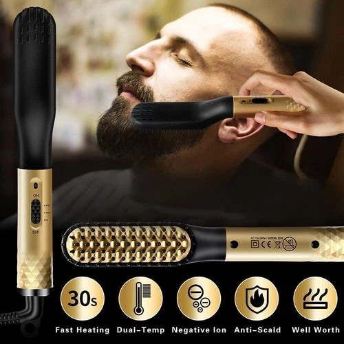 Beard Straightener Hair Brush Quick Heated Electric Comb Style UK Men Grooming