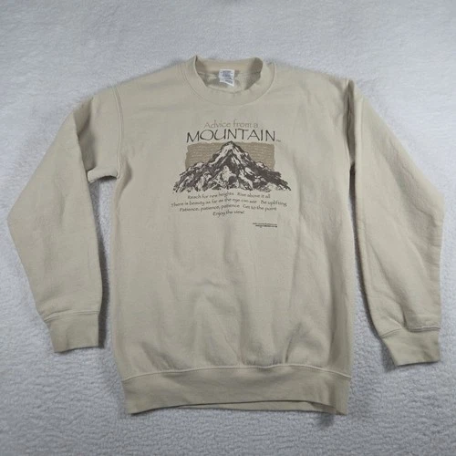Vintage Gildan Mens Cream Advice From a Mountain Crew Neck Pullover Size Small