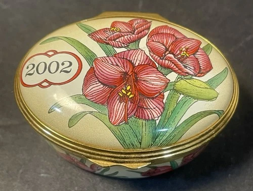 Halcyon Days Enamels Trinket Box 2002 A Year To Remember Lilies Floral Oval VTG