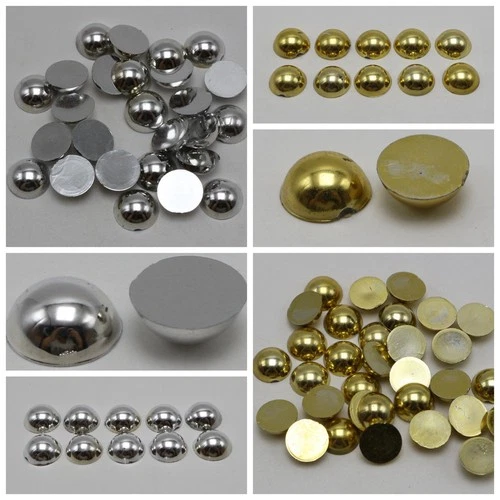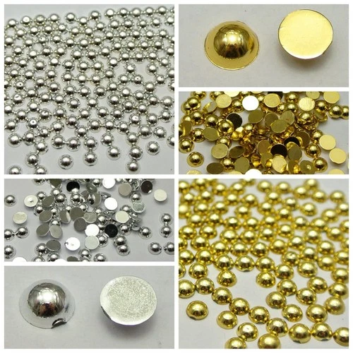 200 Metallic Gold Silver Flatback Round Tiny Half Pearl 8mm Scrapbook Nail Art