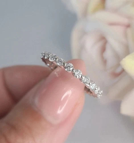 0.78Ct Round Lab Grown Diamond Half Eternity Band Ring Size 8 14K White Gold