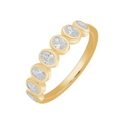 0.65Ct Oval Lab Grown VS/FG Diamond Bezel Half Eternity Wedding Band Yellow Gold