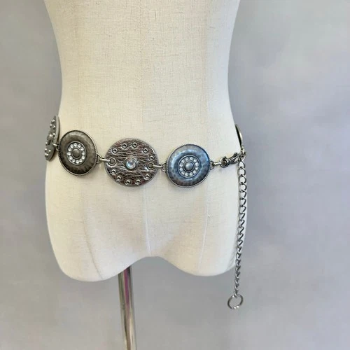 Silver pewter joint medallion concho disc moroccan chain belt Hammered disc Y2k