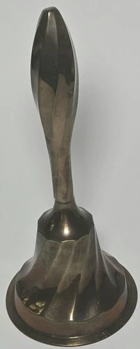 Vintage Brass Hand Bell 7.5” Mid Century Modern Faceted Design
