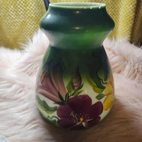 Antique Hand Painted Hurricane Lamp Bell Body Globe Green Victorian 1922 11x8"