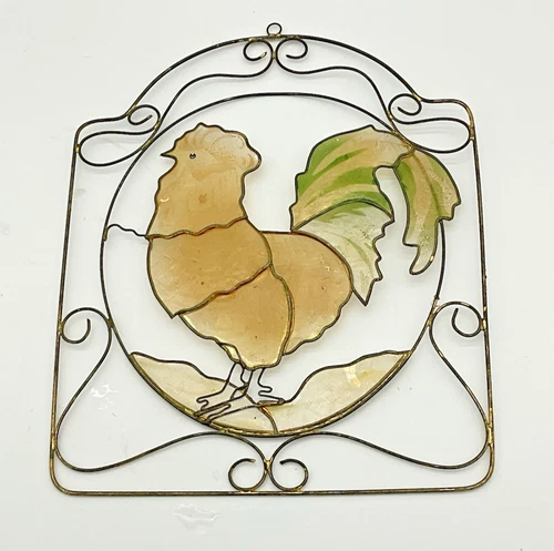 Hand Painted Capiz Shells Rooster Sun Catcher with Wire Frame Delicate