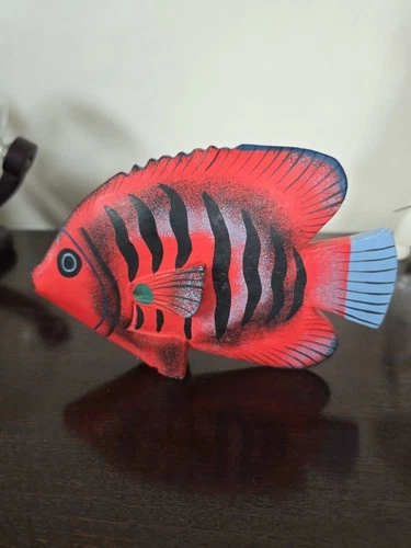 Vintage Hand Painted Wooden Flame Angelfish Figurine - Tropical Marine Ornament