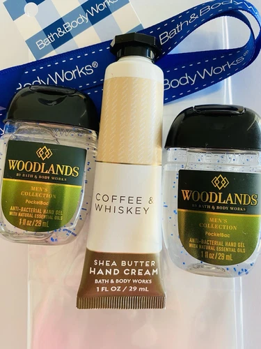 bath & body works hand sanitiser Woodlands Hand cream Whiskey Coffee Shea Butter