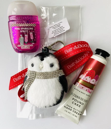 bath & body works hand sanitiser Holder penguin Strawberry Pound Cake Hand Cream