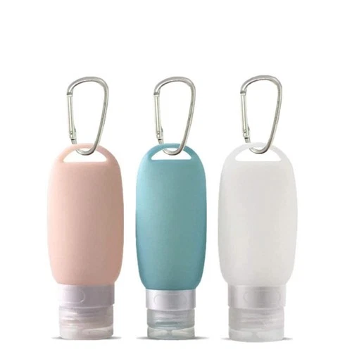 3x Silicone Travel Bottles 60ml with Carabiner Refillable Hand Sanitiser