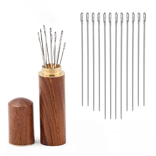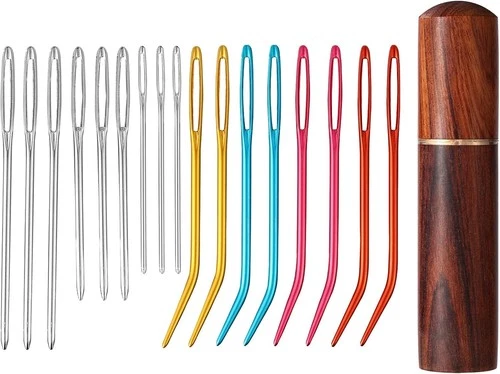 17 Piece Sewing Needles Set with Large Eyelets and Wooden Case, Blunt Stuffing
