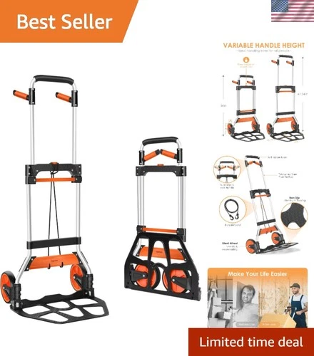 Heavy-Duty Aluminum Folding Dolly with Telescoping Handle - 309 lb Load Capacity