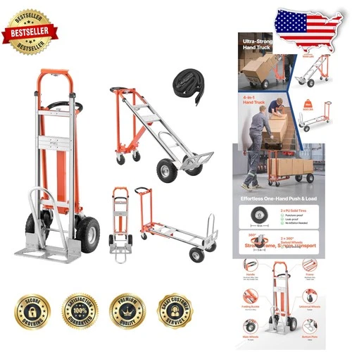 Portable Hand Truck 1000 Lbs 4-in-1 Aluminum Alloy Dolly Smooth Stable Movement