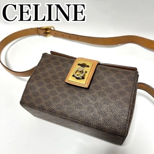 CELINE Shoulder Hand Bag Dark Brown Leather Purse Vintage Authentic From JAPAN