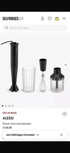 Alessi Plisse Hand Blender Black. New In Box Never Used with Instructions