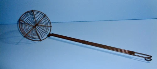 ANTIQUE PRIMITIVE WIRE FARMHOUSE KITCHEN STRAINER HAND HELD SKIMMER 16" AAFA