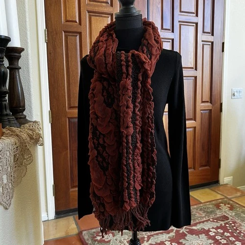 Polyester Rust And Black Ruffle Scarf Rectangle 78” X 12”