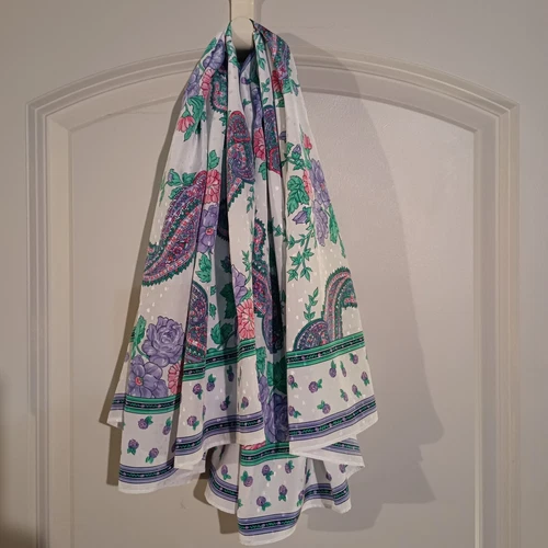 Large Women's Scarf Paisley & Flowers Multicolor 35x35 Vintage