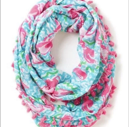 Lilly Pulitzer Riley Infinity Loop Rayon Lobstah Roll Tassel Fringe Scarf Pink