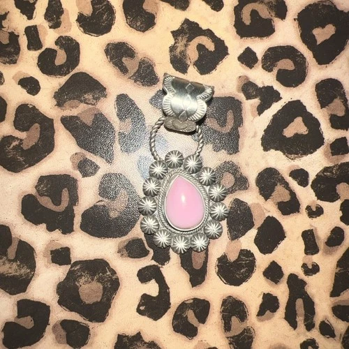 Native Signed Pink Conch Pendant 925 Sterling Silver Signed JS Vintage Estate