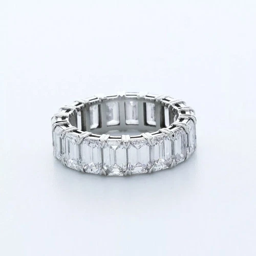 Solid 14K Gold Eternity Wedding Ring Classic 8 CT Emerald Natural Diamond G VS2