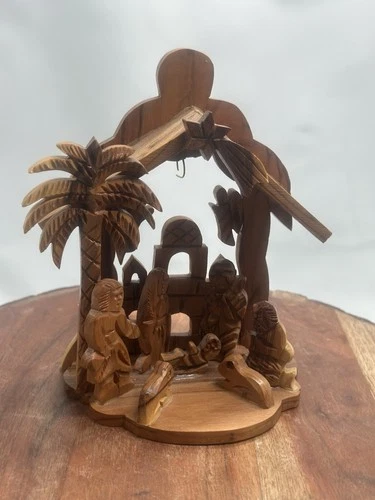 Vintage Olive Wood Nativity Mini Holiday Christmas Shelf Sitter Religious