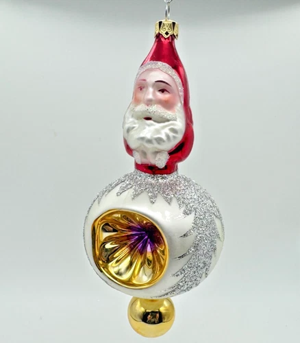 Rare 1992 Early Christopher Radko "Two Sided Santa Reflector" Ornament
