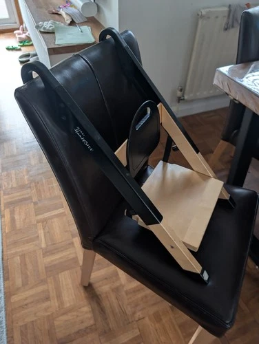 Handysitt Portable Wooden Booster Seat for Kids with Adjustable Straps Black