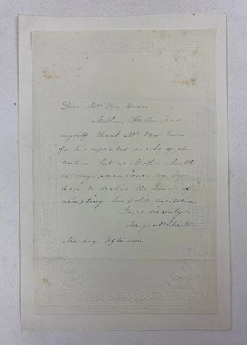 AUTOGRAPH LETTER FROM MARGARET SILVESTER TO HANNAH VAN BUREN WIFE Signed 1807