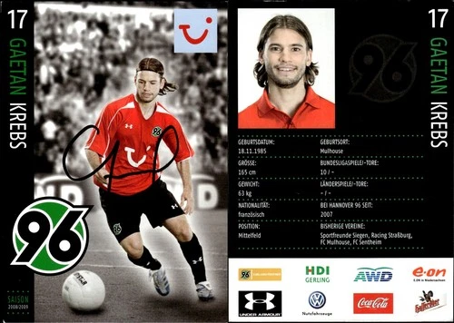 Gaetan Krebs Hannover 96 Season 2008-09 Autograph Autograph Card Football