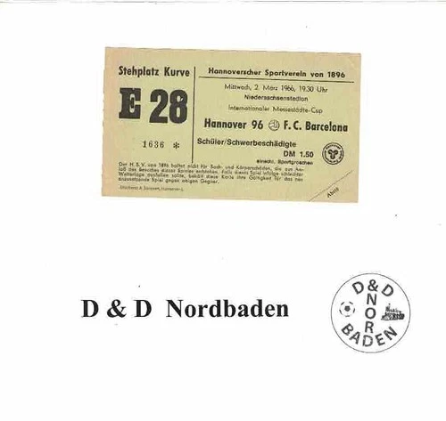 Ticket/entry ticket 65/66 EC Hannover 96-FC Barcelona decision