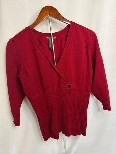 Hillard & Hanson Deep Wine Red V-Neck Waist-Accented Sweater